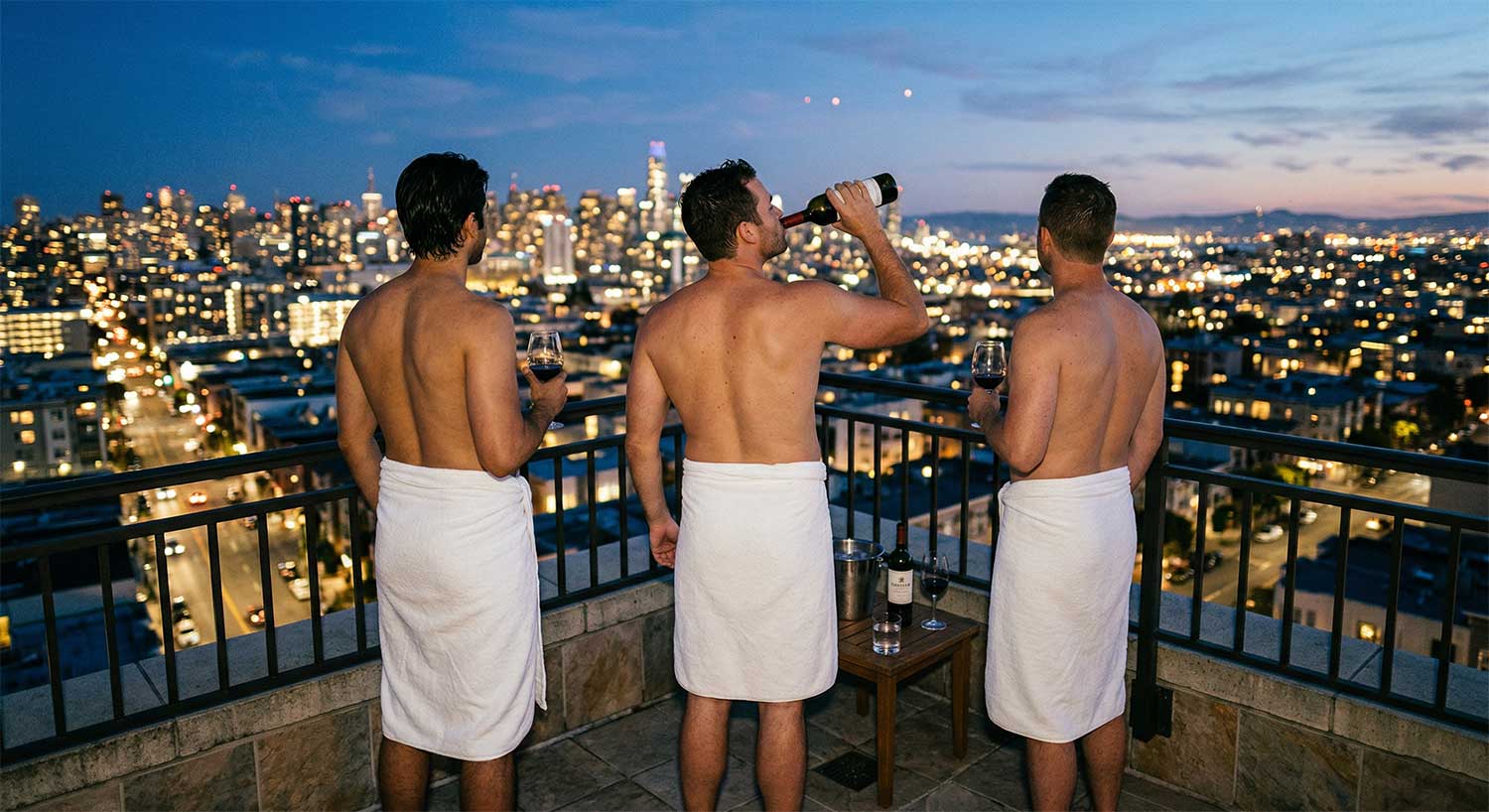 Eram deja transpirati toti si cel de 40 a propus sa facem un dus si sa mai deschidem o sticla de vin.